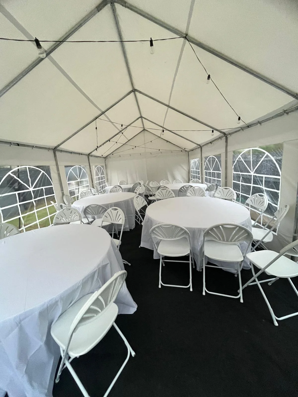 A: Our prices start from just £350 for a 4x8m marquee in North London, with optional extras such as tables, chairs, flooring, and lighting to suit your event and budget.
